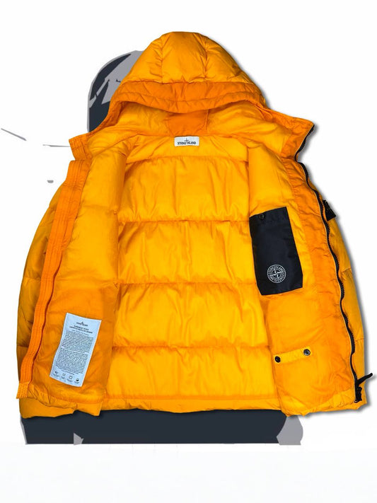 Brugt Used Stone Island Dunjakke Garment Dyed Crinkle Reps Ny Down i Orange farve i L large i god stand