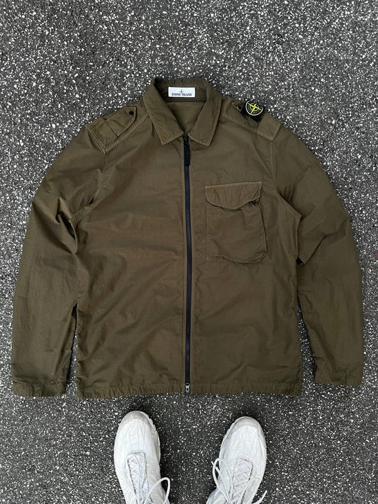 Stone Island Overshirt Skjorte Sommerjakke L Large Khaki Grøn Brugt Used