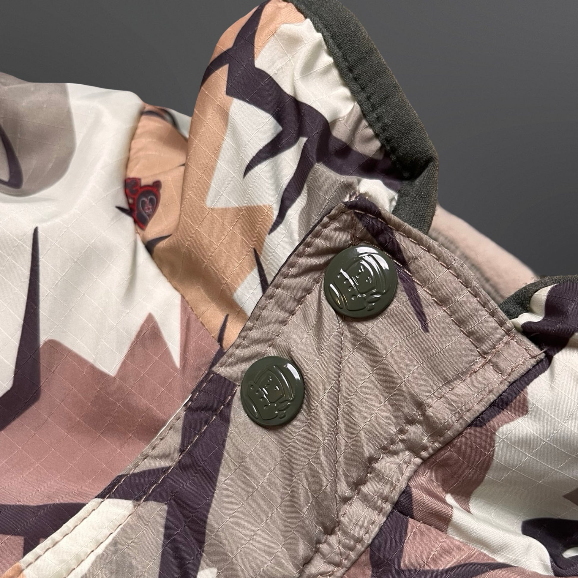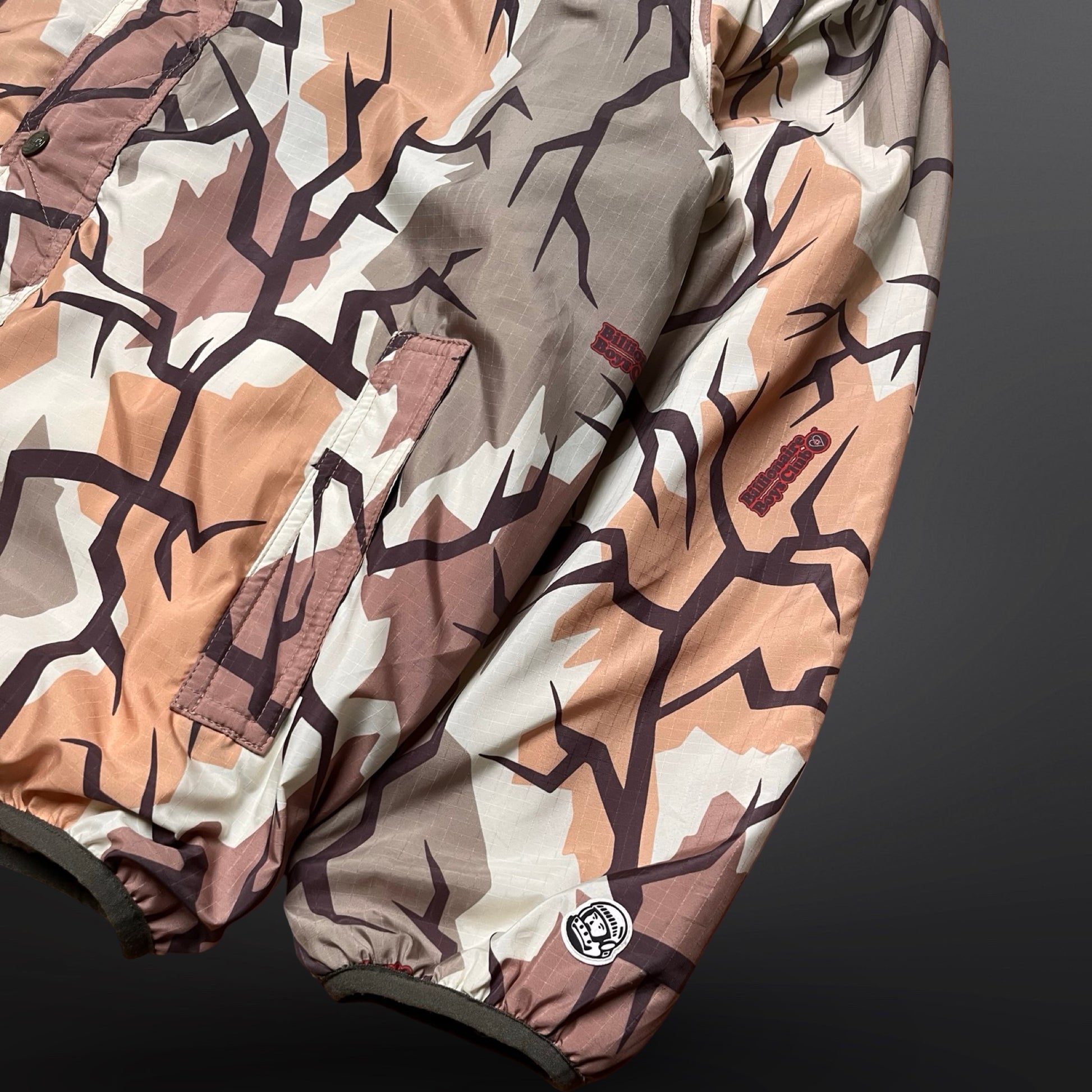 Fed og alsidig jakke fra Billionaire Boys Club med reversibelt design, så du i praksis får to jakker i én. Den ene side kommer i et markant camo-/grafisk mønster med BBC-detaljer, mens den anden side er en mere clean og sporty fleece-side i neutrale farver – perfekt til hverdagsbrug.