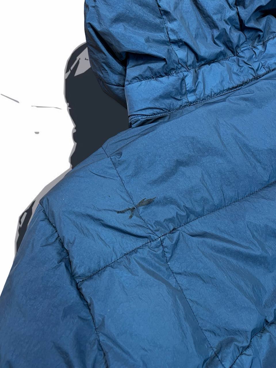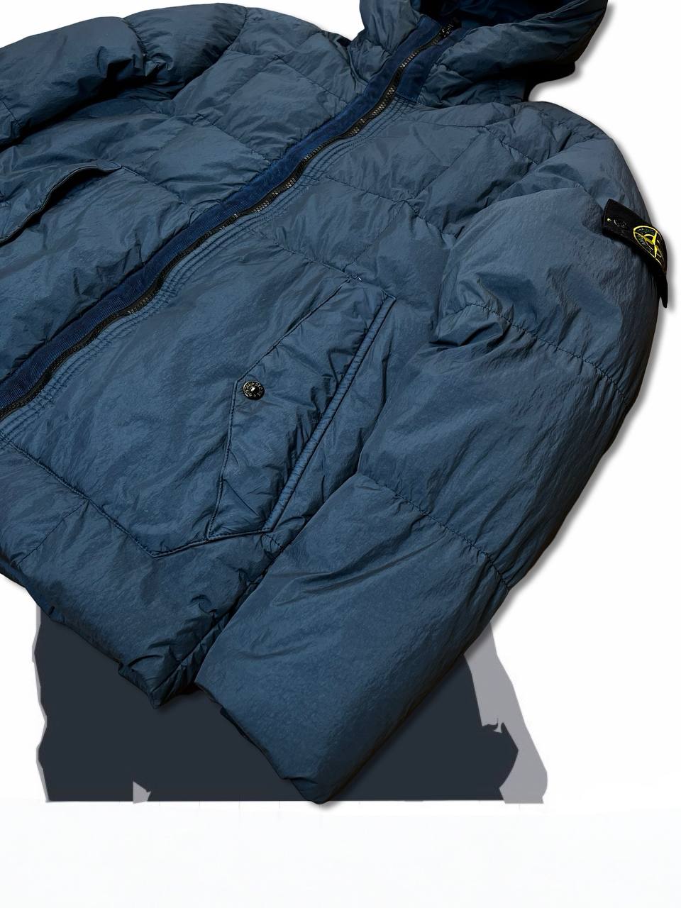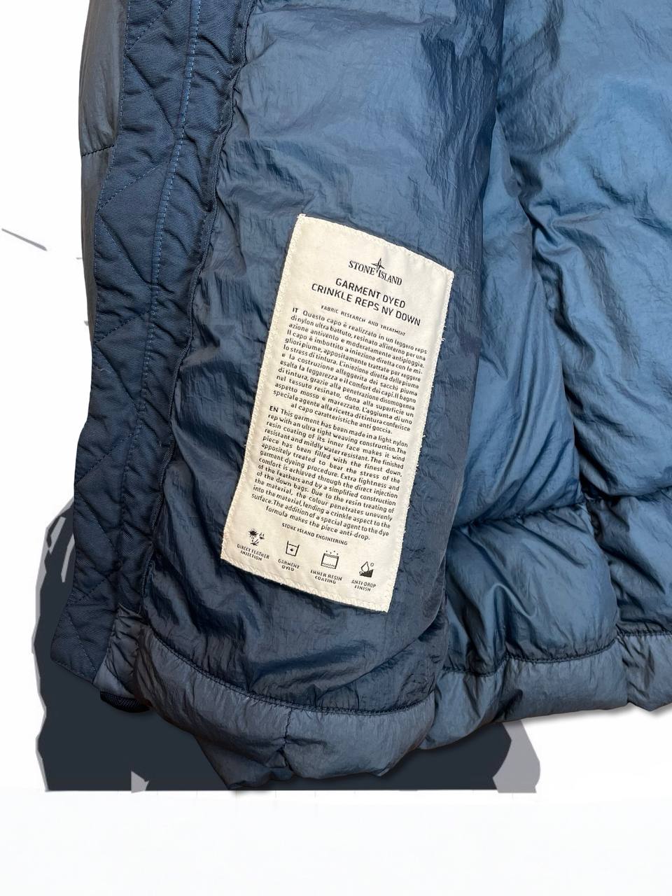 Brugt Used Stone Island Dunjakke i Navy farve L large Garment Dyed Crinkle Reps Ny Down