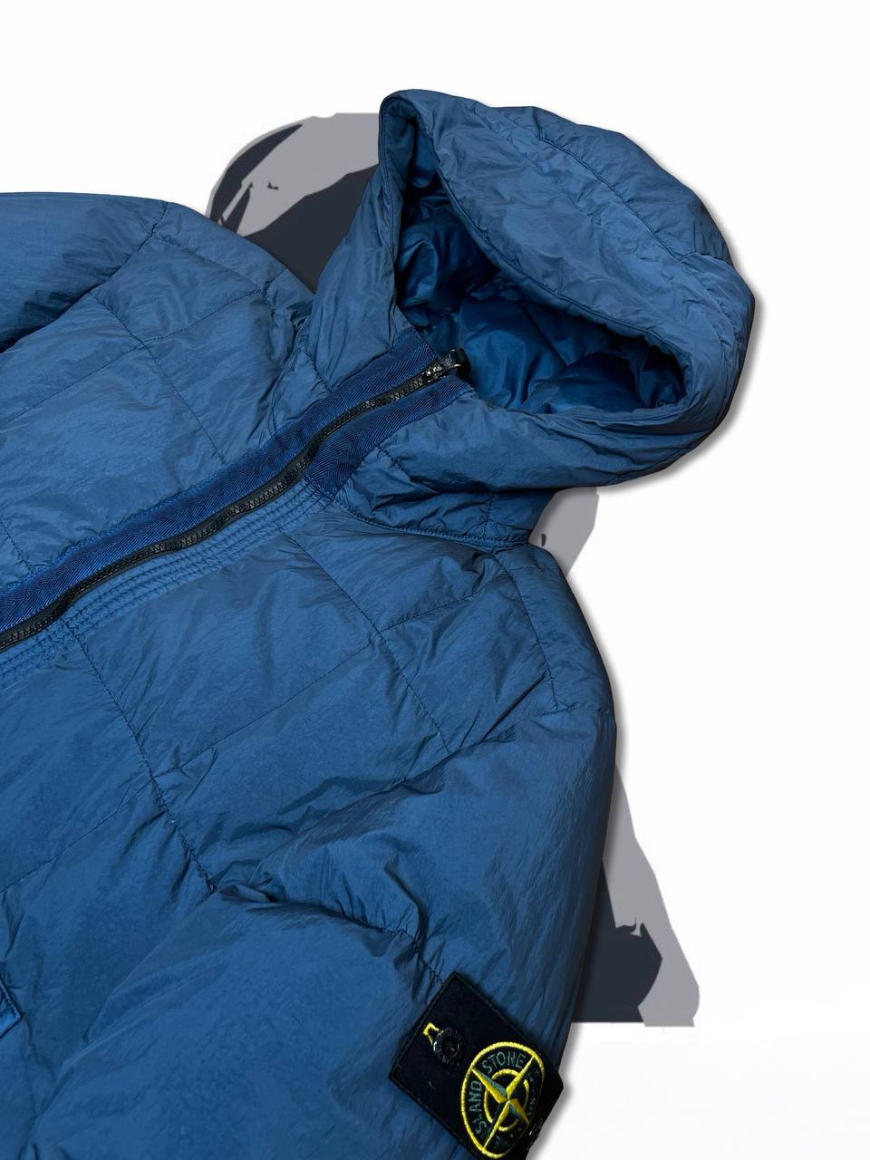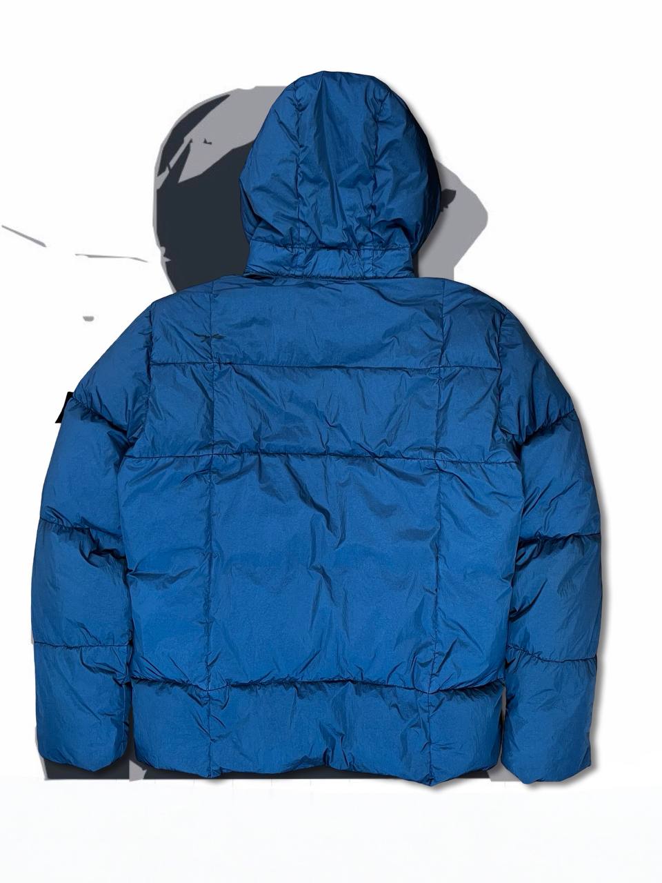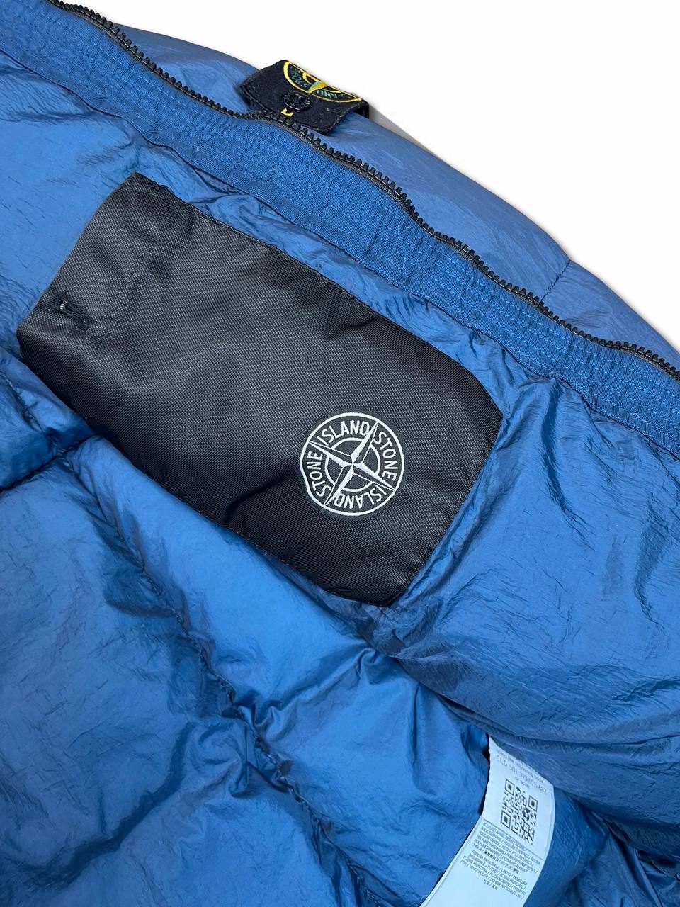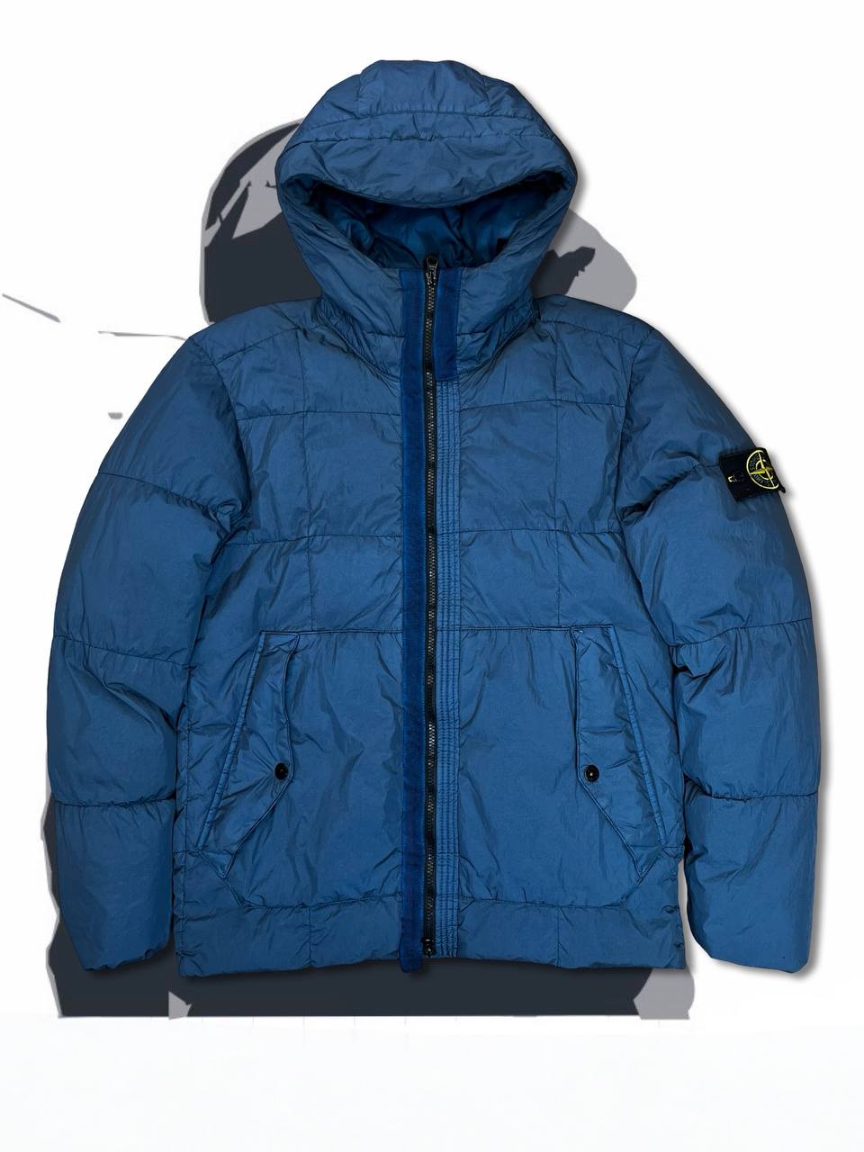 Brugt Used Stone Island Dunjakke i Navy farve L large Garment Dyed Crinkle Reps Ny Down