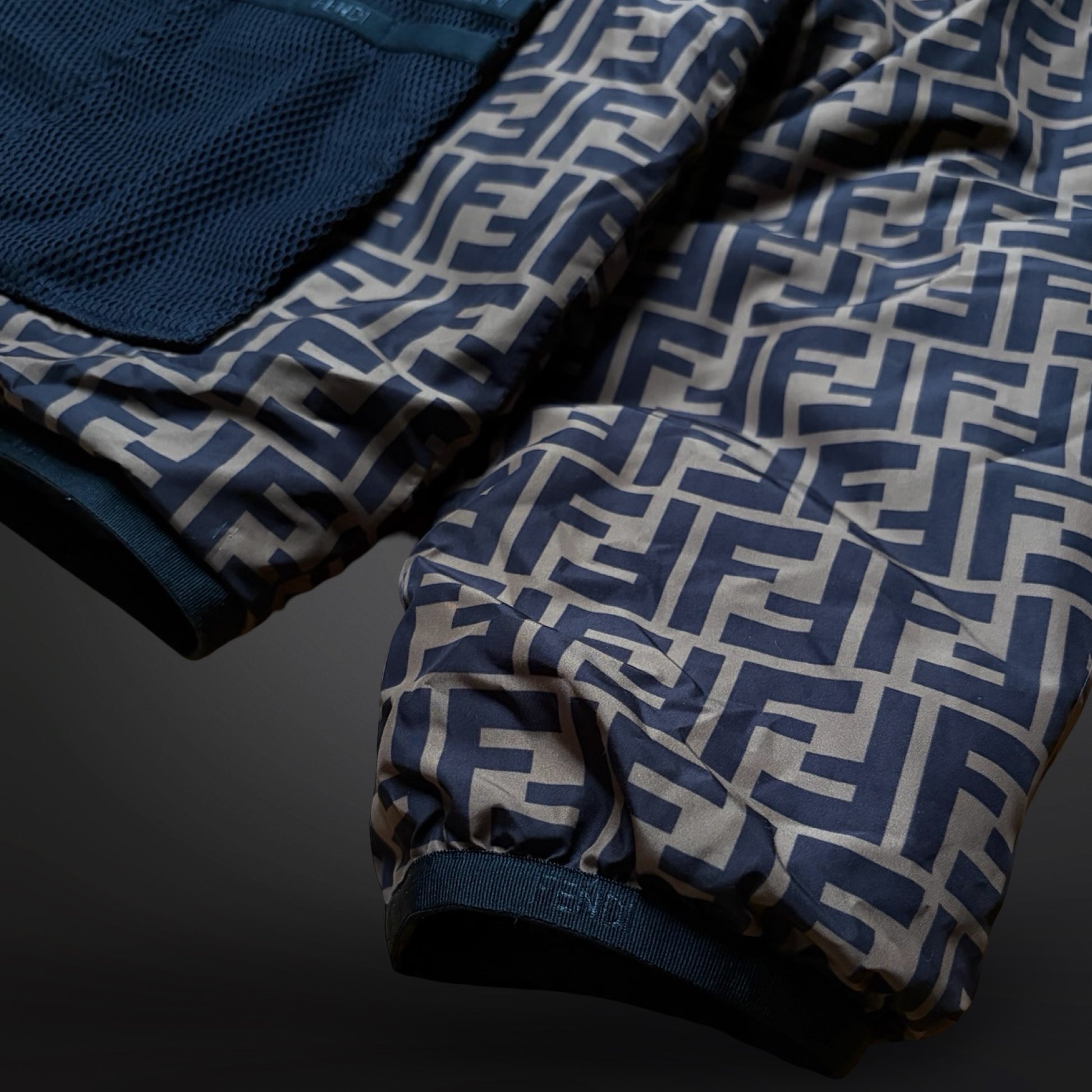 En af de stærkeste jakker fra Fendis AW20-kollektion. Full reversible design: vælg mellem all-over FF monogram eller en mere clean navy puffer. To jakker i én – perfekt til dig der vil skifte vibe fra luksus-logo til minimalistisk high-end look.