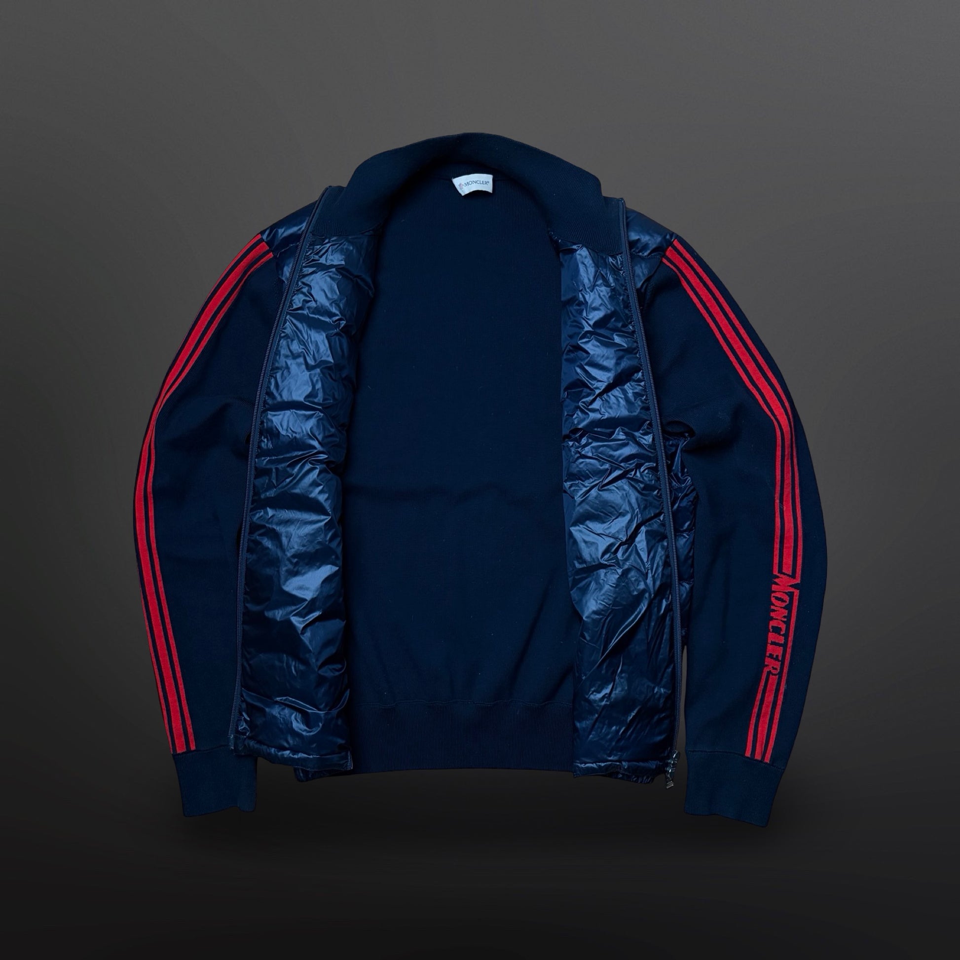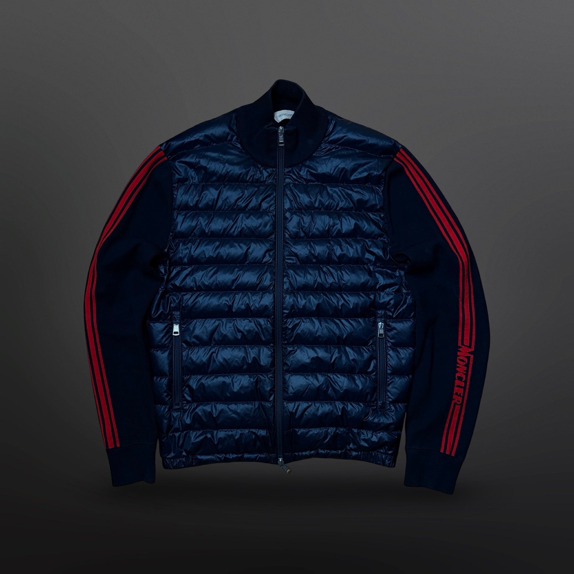 Moncler Knit-Sleeve Down Jacket – Navy/Red (Large)
