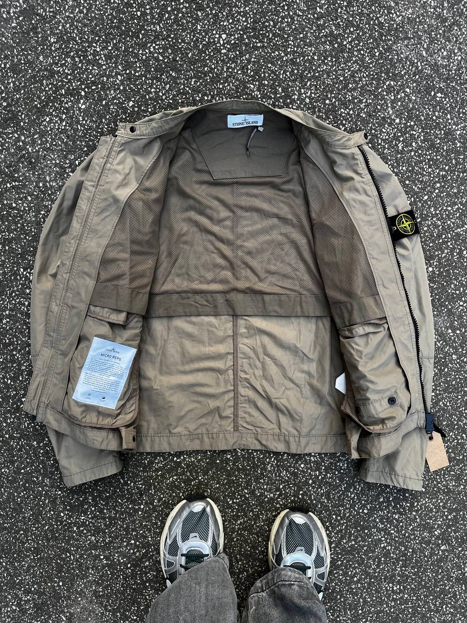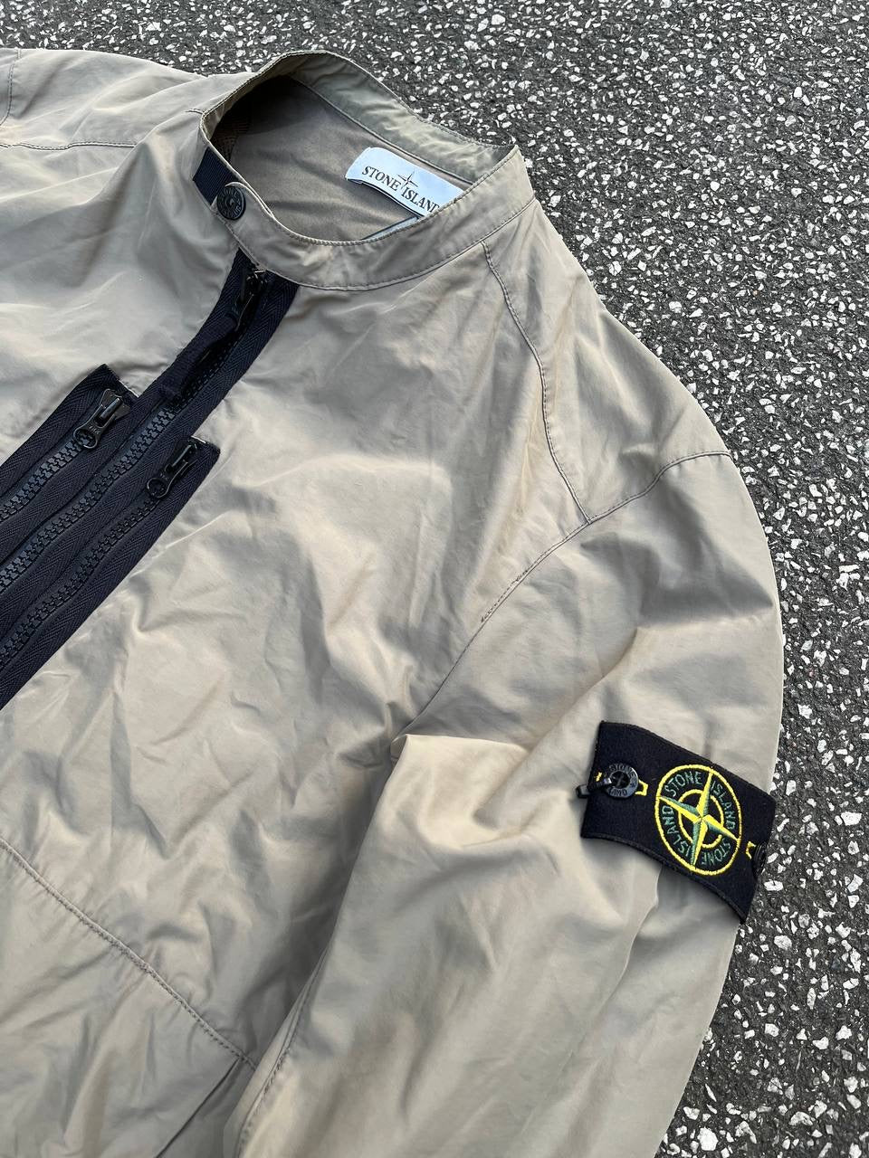 Lækker bomber jakke fra Stone Island i en klassisk beige farve. Mærket som str. Large, men den passer bedst en Medium.