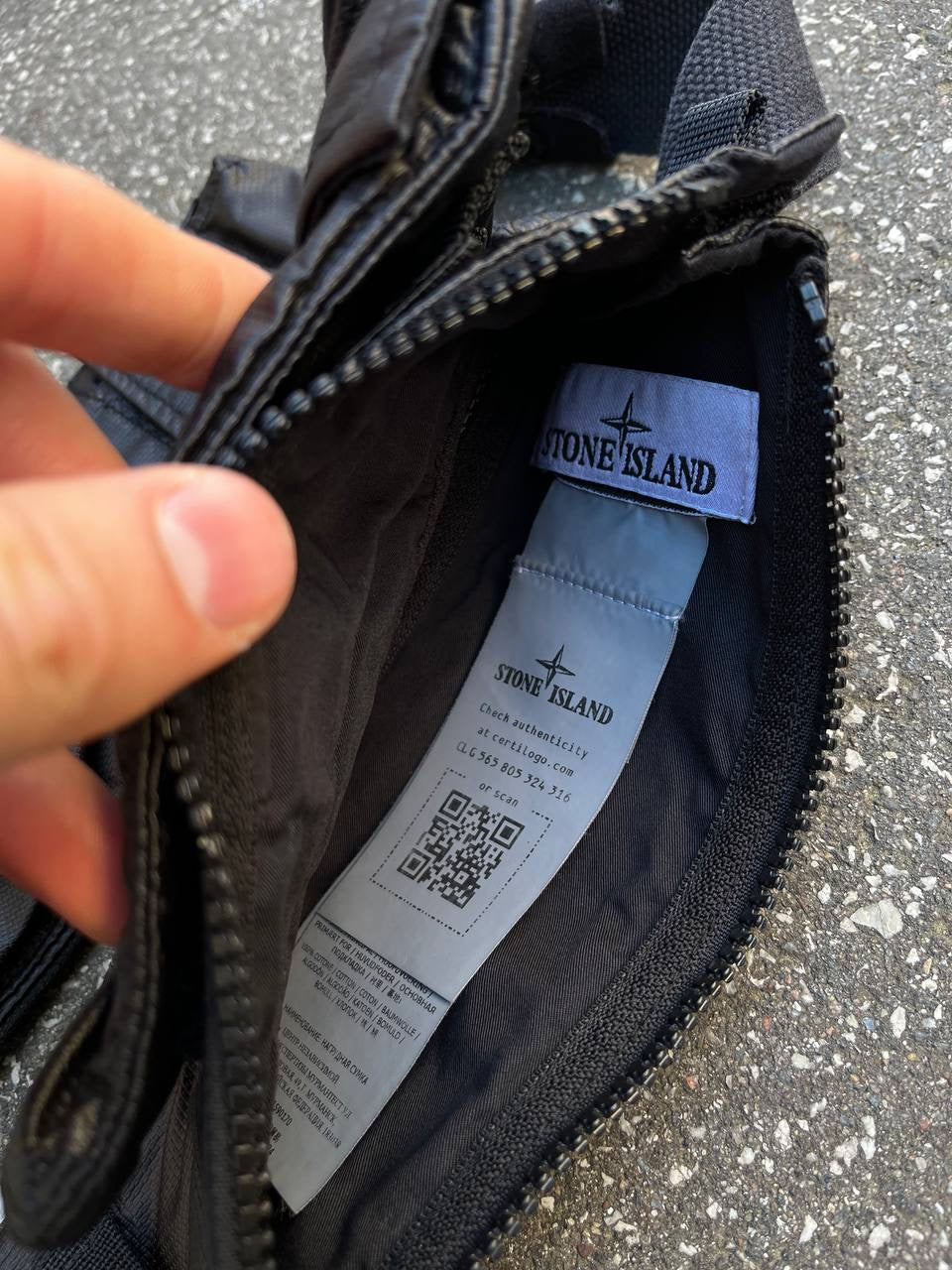 Stone Island Mussola Gommata Canvas Shoulder Pouch Black