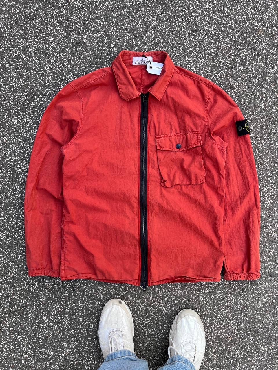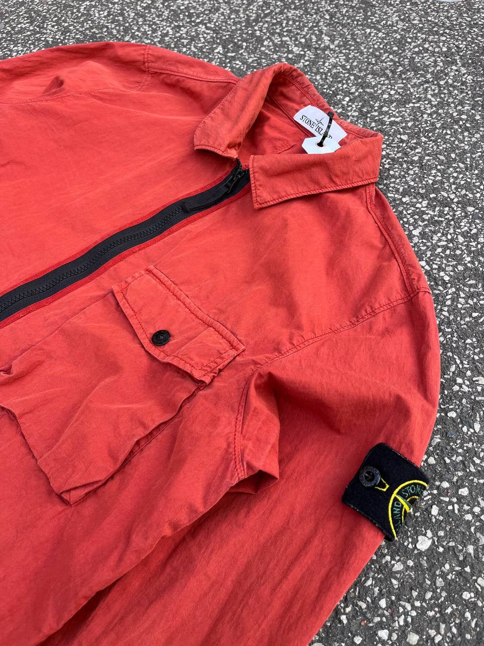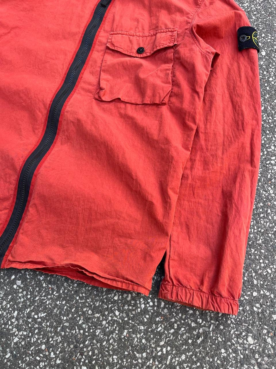 Stone Island Overshirt Skjorte Med Lynlås Jakke Overgangsjakke M Medium Brugt Used Rød Coral Farve