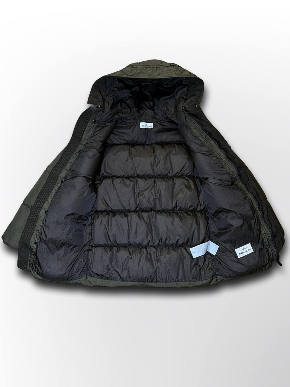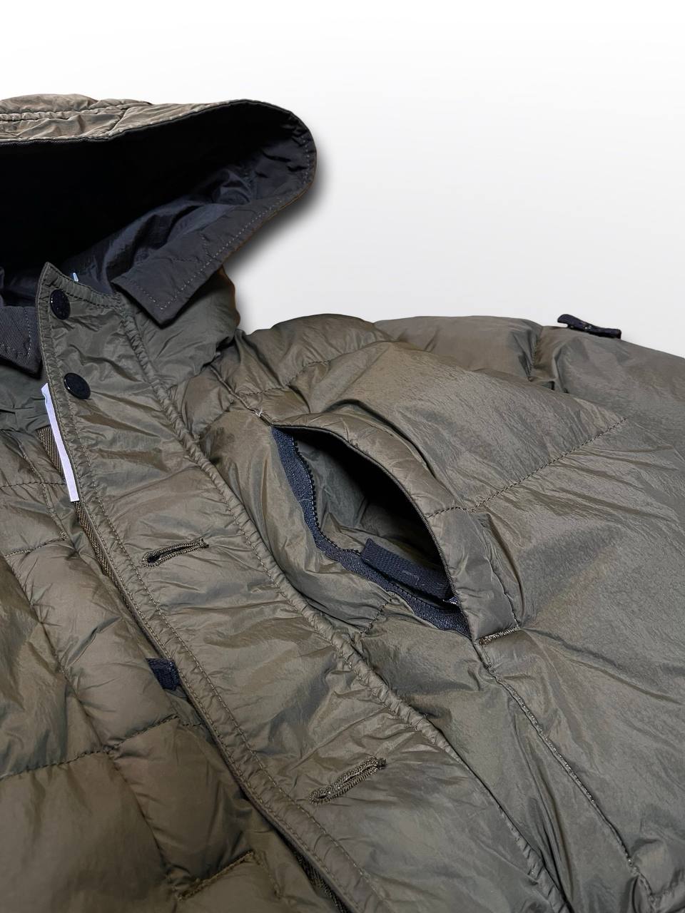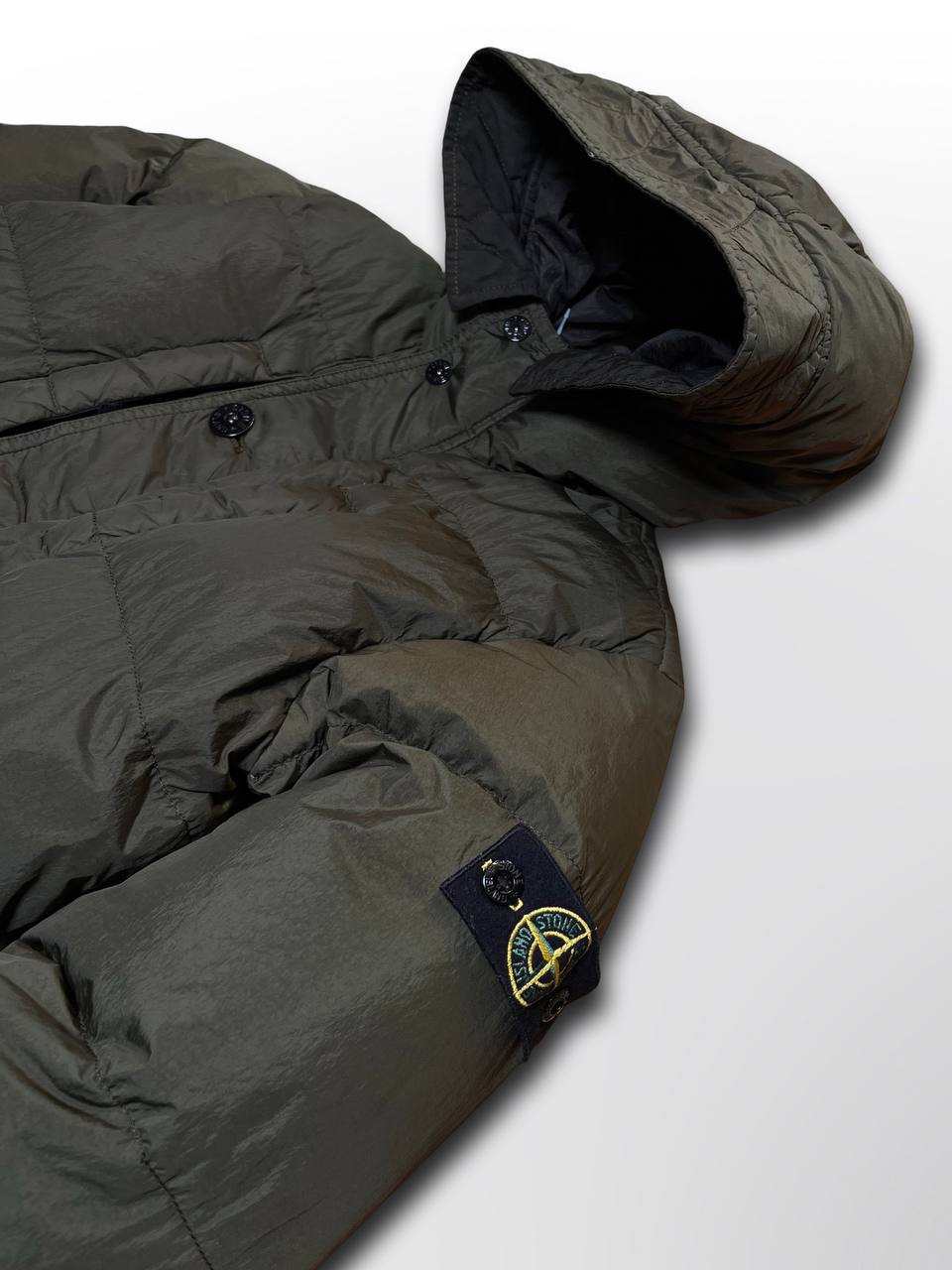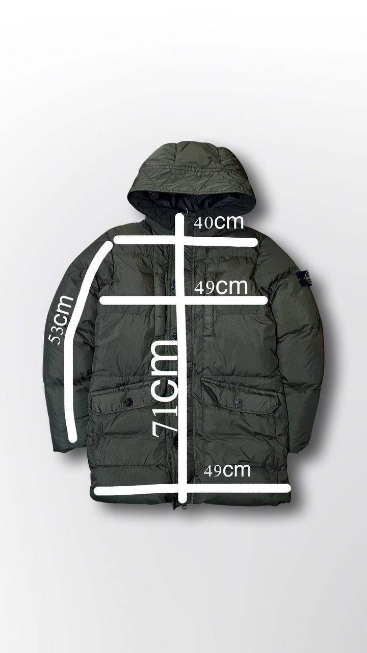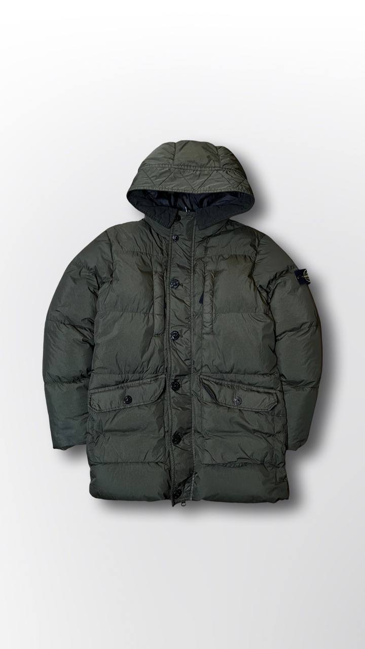 Stone island puffer vinterjakke varm stone island jakke i mørkegrøn khaki farve i XS 154cm