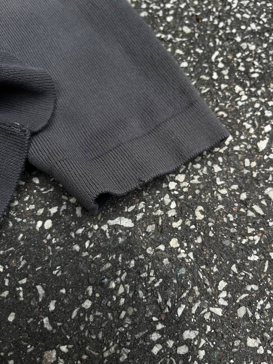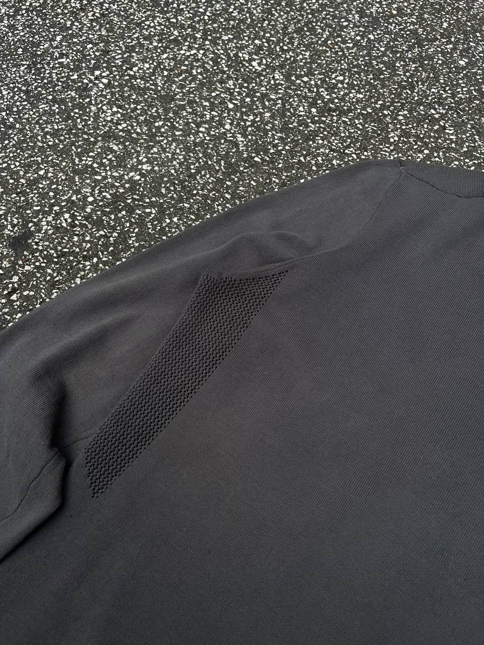 Tynd, teknisk striktrøje fra Stone Island Shadow Project i en mørk grå farve. Minimalistisk og funktionel med ribkanter, mesh-detaljer under armene og ikonisk sort Shadow Project badge. Lavet i bomuldsblanding med god komfort og lidt stretch. Lidt slid i ærmet – se billede.