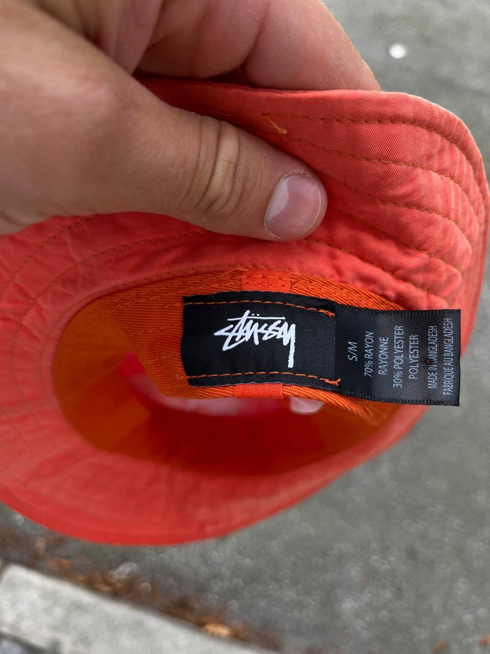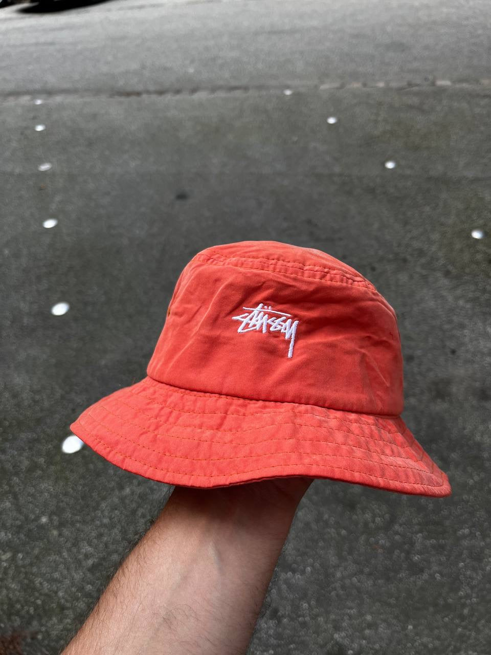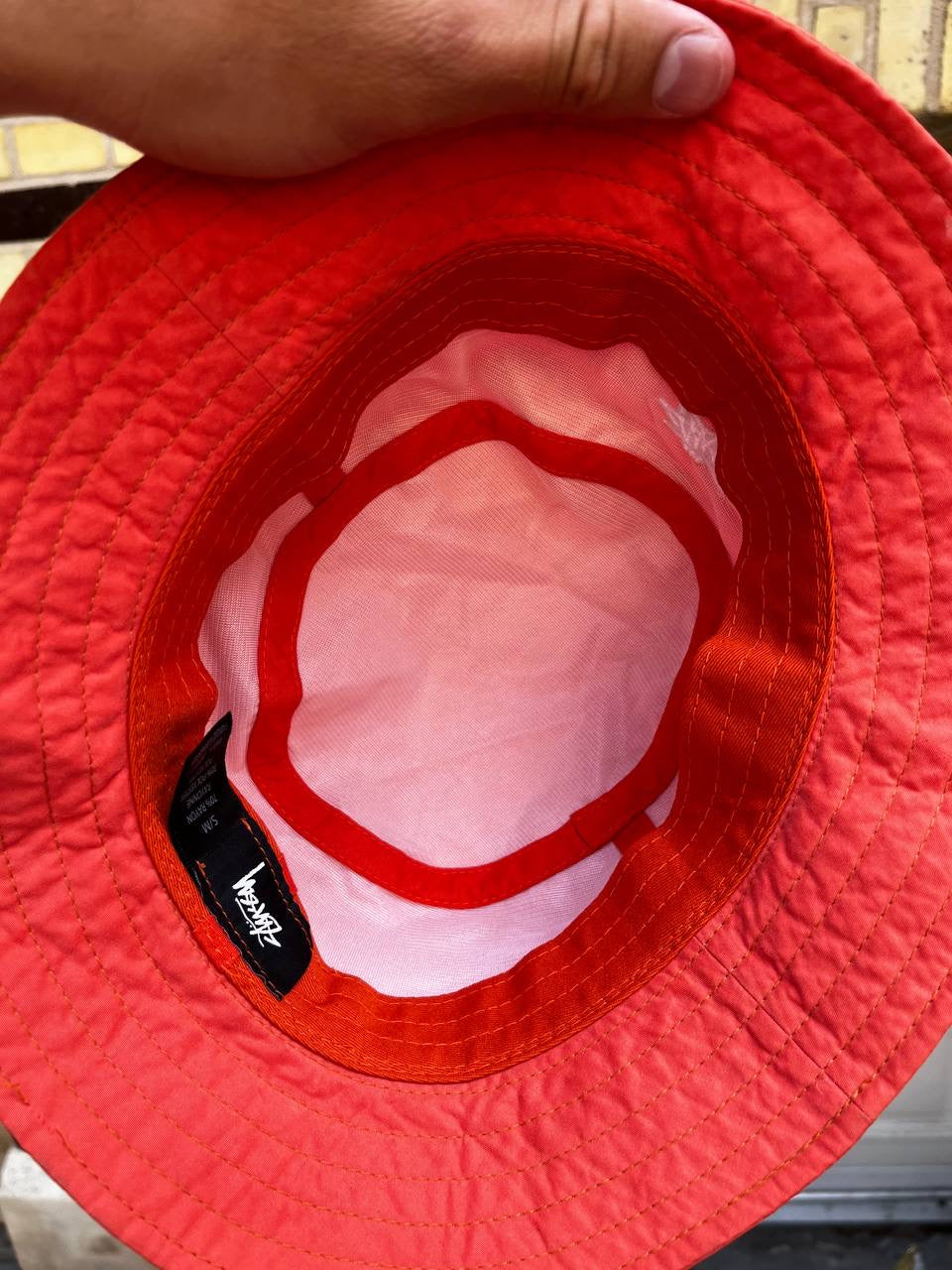 Original Stüssy bøllehat i en frisk koralfarve – perfekt til sommerens fits eller som et statement piece i hverdagen. Hatten har det klassiske Stüssy-logo broderet foran og er lavet i en blød og behagelig blanding af rayon og polyester.