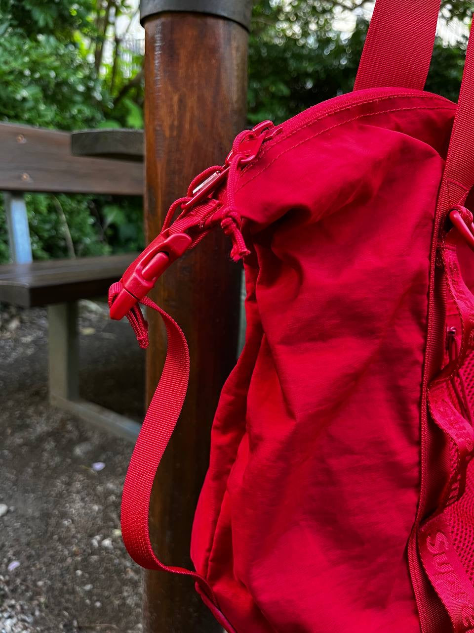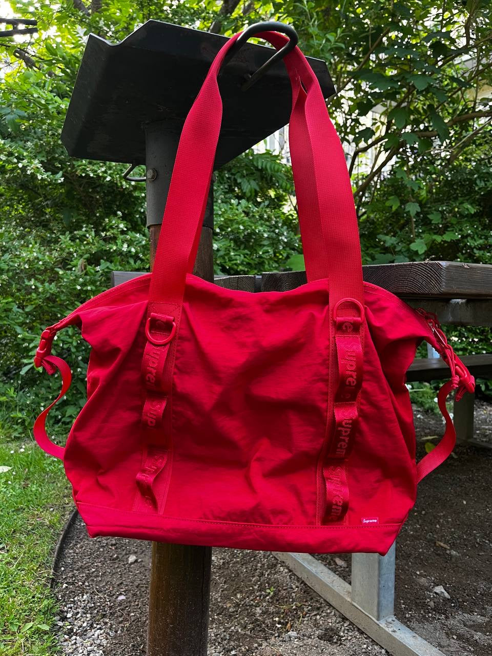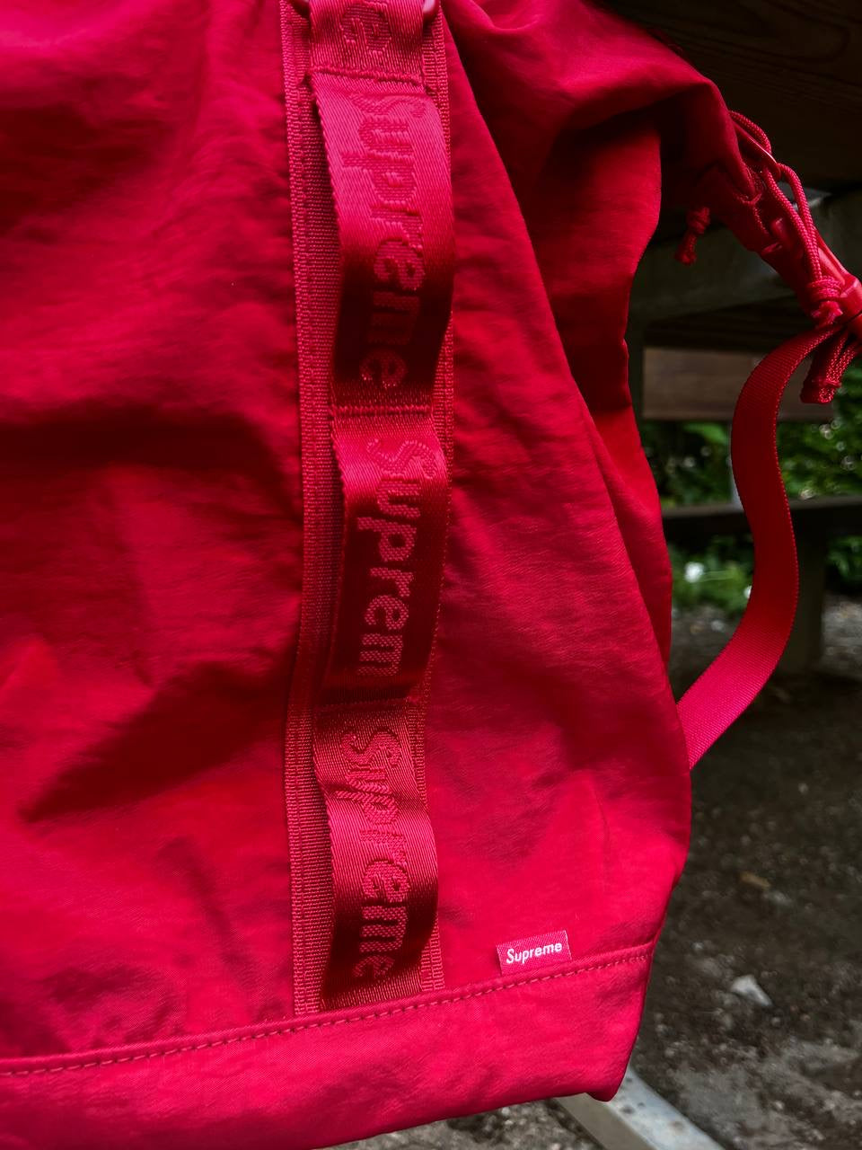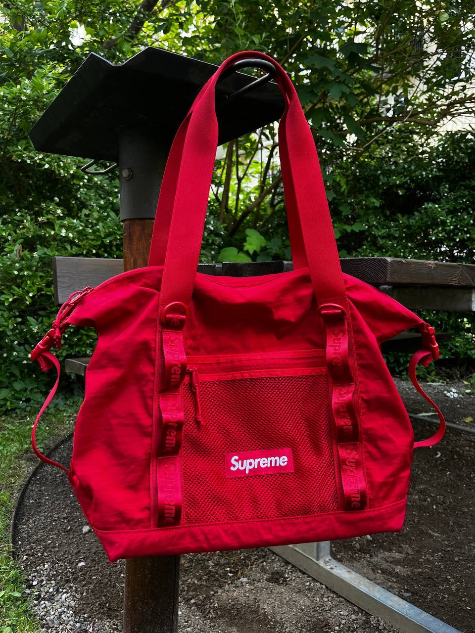 🔺 Detaljer: Justerbar skulderrem, netlomme foran, diskrete Supreme-logoer inde og ude